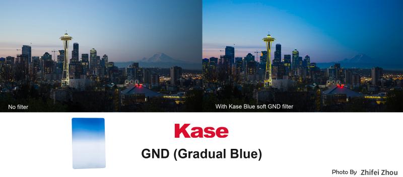 Kase® Gradual Blue är ett avtonat 100x150mm blåfilter, som används för att förstärka och förbättra en grå och tråkig himmel. Tack vare att filtret är avtonat så kan man justera in avtoningen efter horisonten, så att bara t.ex himlen förstärks. Filtret har en långsam övergång av avtoningen (soft), vilket är mera "förlåtande" när horisonten är bruten. Filtret är rektangulärt (100x150mm), med en tjocklek på ca 2 mm. Filtret kan användas på alla filterhållare, som är avsedda för rektangulära 100mm-filter, med en tjocklek på 2mm. Förutom att använda Kase® egna filterhållare K6/K8/K9, så kan man naturligtvis även använda filterhållare från Lee filter, Fotobestway, Nisi eller andra fabrikat av filterhållare.