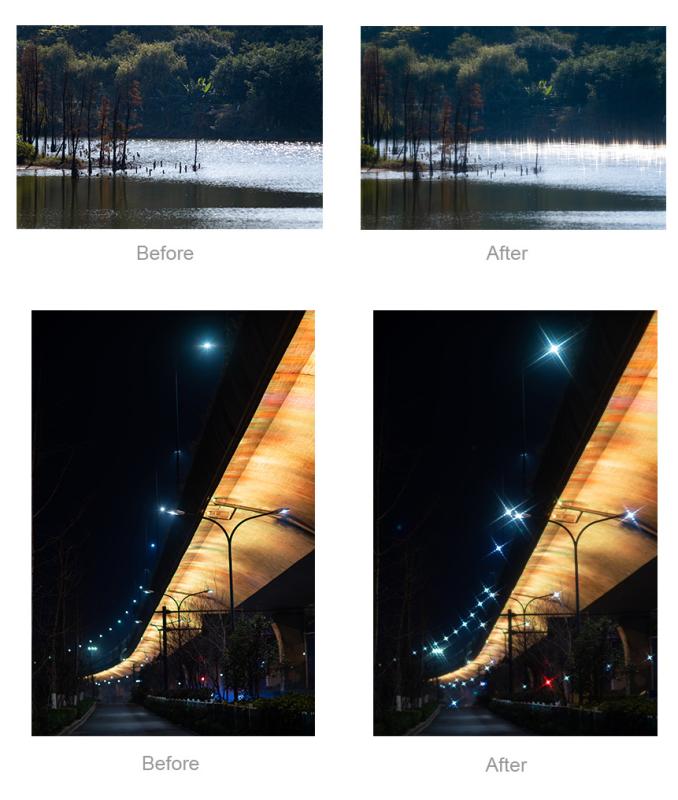 Kase Star Burst 4-Point är ett magnetiskt stjärnfilter, som ger en effekt av en 4-uddig stjärna vid ljuskällor. Det är ljusets brytning i rutnätet på filtret, som skapar de fina stjärnorna. Riktningen på stjärnspetsarna kan styras genom att man vrider på filtret. Tack vare att stjärnfiltret är magnetiskt, så kan man snabbt och smidigt sätta fast eller plocka bort filtret från adapterringen på objektivet. Det går också att sätta fast flera magnetiska filter efter varandra. Filtret levereras tillsammans med en Magnetic adapterring, som skruvas fast i optikens filtergänga och passar objektiv med 77mm filtergänga. (Magnetiska step-up ringar för andra filtergängor finns att köpa till underst på sidan.)