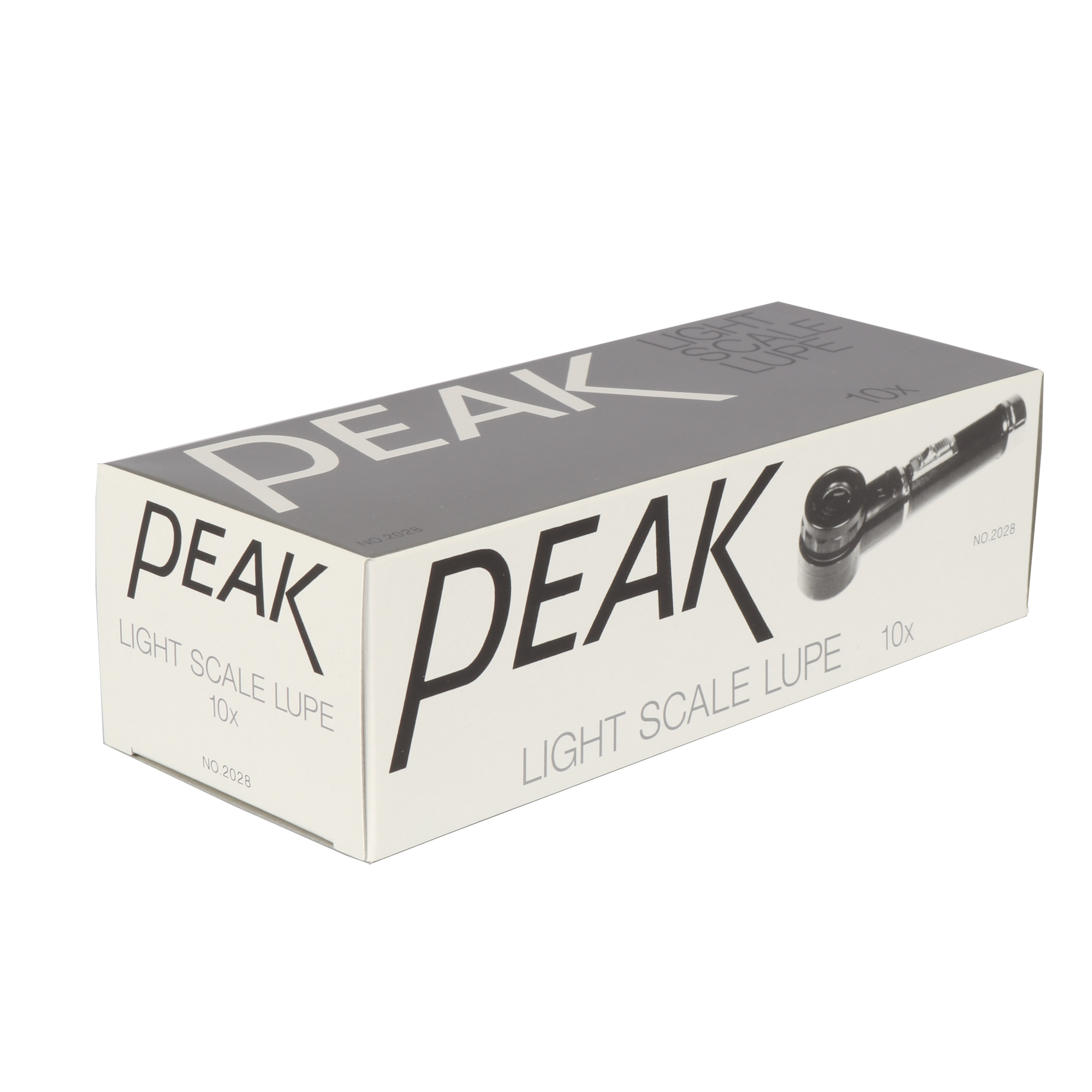 Peak luppens akromatiska lins-system består av fyra linser i två grupper. Precisionsskala, med gradering varje 0,1 mm, gör det enkelt att mäta detaljer på negativet/dia med hög exakthet. Mätskalans längd är 30mm. Fokuserbart okular. Peak-luppen och hantaget levereras i en praktisk förvaringsask, tillsammans med en putsduk.