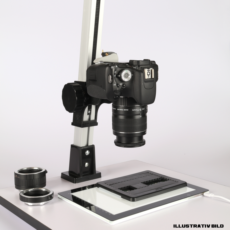 Ett repropaket (#28) med reproställ, ljusbord och filmhållare för att underlätta avfotografering av negativ och positiv. Paketet innehåller ett Fotobestway CS-102 reproställ, ett Art-Slim ljusbord (A5-Storlek) och en Pixl-Latr filmhållare. Fördelen med att använda Fotobestway CS-102 reprostativ är att kameran och negativet hamnar parallellt , så att man undviker parallax- och skärpefel. Ljusbordet ser till att negativet (eller positivet) blir jämnt bakgrundsbelyst. Filmhållare ser till att hålla fast negativ-remsan (eller bladfilmen) på ljusbordet. (Det går att köpa till en insats för monterade diabilder).