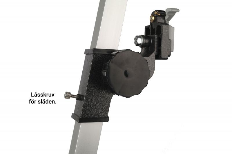 - Tack vare att reprostället har en lutande pelare, så förflyttas kameran automatiskt längre ut från x-axeln ju högre kameran hissas.