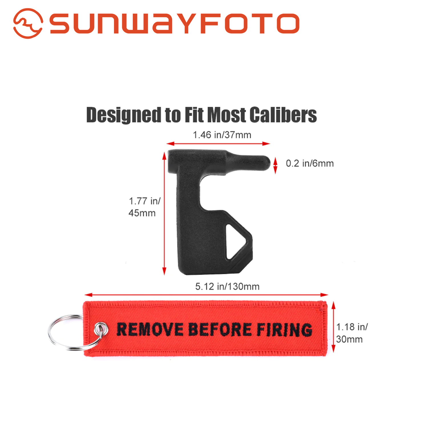 Sunwayfoto CF-01 Chamber Safety flag är en säkerhetsflagga/säkerhetspropp för att visa att vapnet är oladdat. Säkerhetsflaggans polymer-del sätts fast i patronläget. Polymer-delen passar till flera kalibrar. Polymer-delen är dessutom repsäker, lämnar inga märken och kan användas som ett verktyg. Flaggan har texten "Remove before firing" på ena sidan och "Sunwayfoto" på andra sidan. Säkerhetsflaggan kan fästas i en nyckelring. Proppen kan fäsats på en Picatinny / Weaver skena när den inte används.