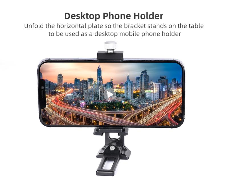 Sökord: Stativfäste för smartphone, hållare för smartphone, bordsstativ för smartphone, luta smartphone, rotera smartphone.
