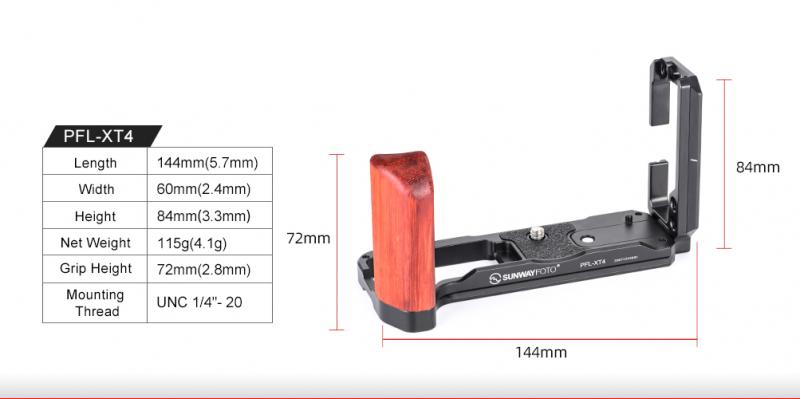 Sunwayfoto® PFL-XT4 är en Arca-Swiss kompatibel L-fäste med kameragrepp (grip) för Fujifilm X-T4.
