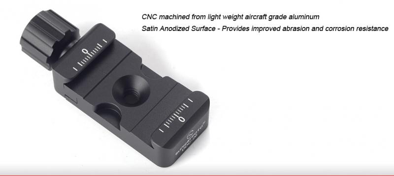 Sunwayfoto® DDC-26 är ett Arca-Swiss kompatibelt snabbfäste, med graderad skala. Längd: 26mm