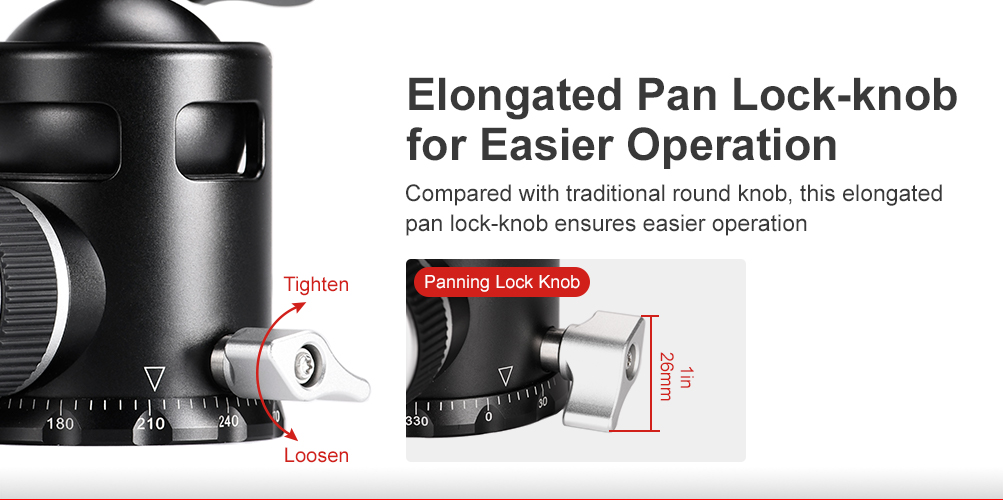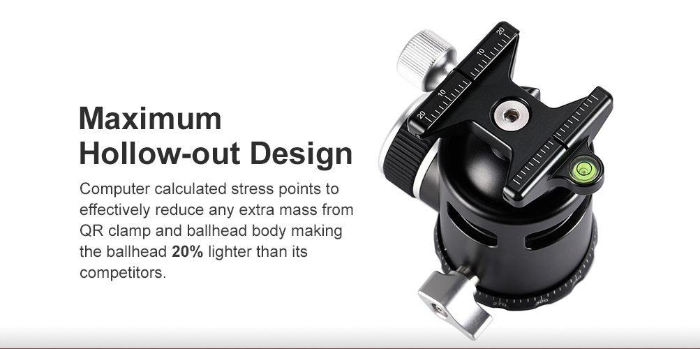 Sunwayfoto® EB-44 är tillverkad i en T6061 aluminiumlegering, med anodiserad yta, som uppfyller mycket höga krav på korrosionsbeständighet och hållbarhet. Inga detaljer har lämnats åt slumpen. Låsratten till kulleden är designat för extra bra grepp. Istället för traditionell låsratt så har panoramabasen ett låsvred i metall, som gör det enklare att låsa panoreringen. Även detaljer som inte syns utanpå har förfinats. Själva kulan i kulleden har också "Hollow Out"-design och är cirka 34% lättare än kulan i FB44-serien.
