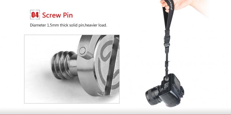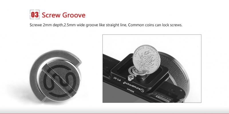 Sunwayfoto® QRS-01 är en 1/4" standard kameraskruv (med D-ring och myntspår) för fastsättning av kamera på kameraplatta och L-fästen. D-ringen gör det möjligt att dra åt eller lossa skruven med fingrarna. Skruvhuvudet har även ett myntspår, som gör det möjligt att använda ett mynt för att få mer kraft. Skruven är tillverkad i rostfritt stål. Förpackningen innehåller en skruv.