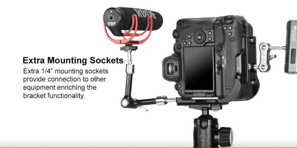 Vissa bilder är illustrativa. Kameror, mikrofoner, ledade armar mm ingår ej. Sökord: lbracket L-Bracket