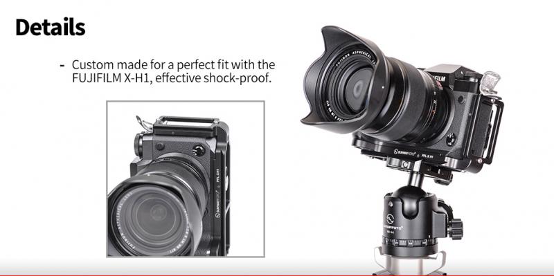 Sunwayfoto® PFL-XH1 är ett Arca-Swiss kompatibelt L-fäste (L-Bracket) för Fujifilm X-H1.