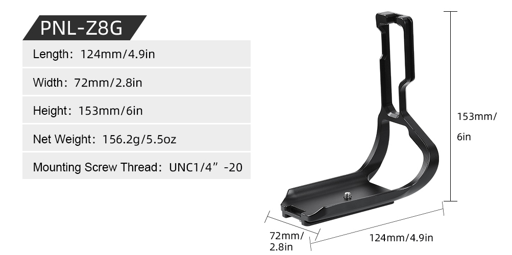 Sunwayfoto® PNL-Z8G är ett Arca-Swiss kompatibelt L-fäste (Custom L-Bracket) för Nikon Z8 (med batterigrepp MB-N12).