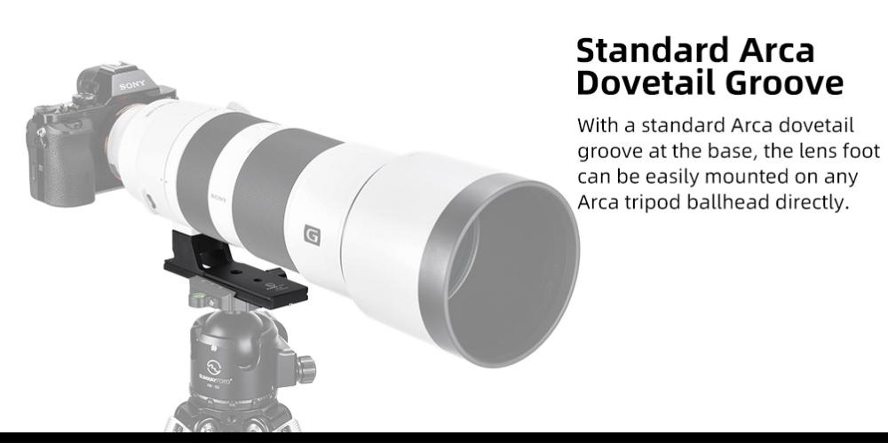 Sunwayfoto® LF-S2 Lens Foot är en Arca-Swiss kompatibel stativfot för Sony FE 200-600mm.