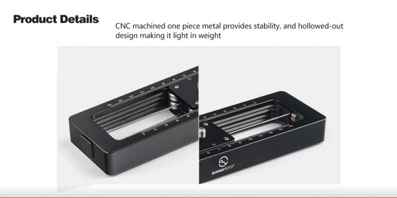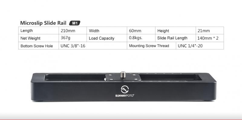 Sunwayfoto M1 Micro-slip rail är en mobilskena, med japanska kullager, som ger en extrem mjuk och tyst förflyttning av kameraplattan på skenan.