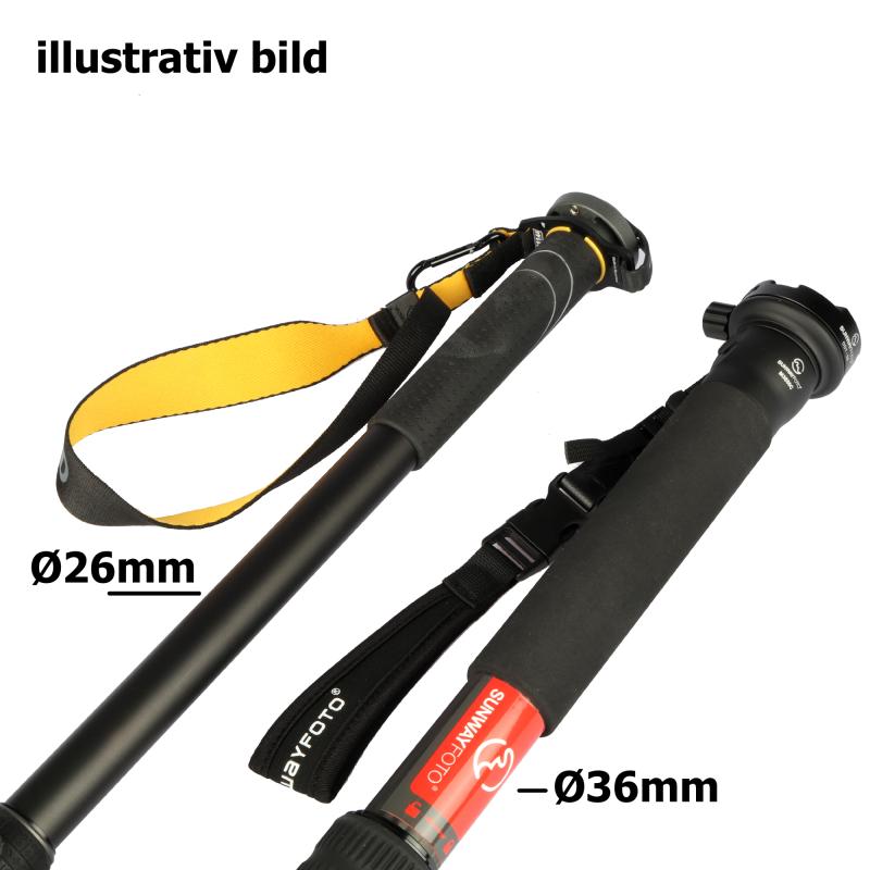 Sunwayfoto M3650C Carbon fiber monopod är ett mycket stabilt och högt enbensstativ (av 10 lagers kolfiber) för t.ex sport-, konsert- och fågelfotografer där man ofta har behov av att snabbt kunna förflytta sig för att fånga motivet från andra vinklar. Sunwayfoto M3650C är tillverkad i 10x kolfiber och levereras med ett Arca-swiss kompatibelt snabbfäste (DDY-58) i T6061 aluminium, med en hårdanodiserad yta, som uppfyller extremt hög krav på korrosionsbeständighet och hållbarhet. Enbensstativet från Sunwayfoto har betydligt grövre bendiameter än vanliga enbensstativ. Diametern på översta sektionen är imponerande Ø36mm! Översta sektionen är försedd med E.V.A-"grepp" och handledsrem med snabbkoppling. I kombination med längre benlås, så uppnår man oöverträffad stabilitet för ett enbensstativ i denna prisklass. Maxhöjden på enbensstativet är riktigt bra, 173 cm. Transportlängden är 51 cm och vikten endast 740g. Sunwayfoto M3650C Carbon fiber monopod levereras med såväl gummi-fötter som spikfötter och en transportväska.