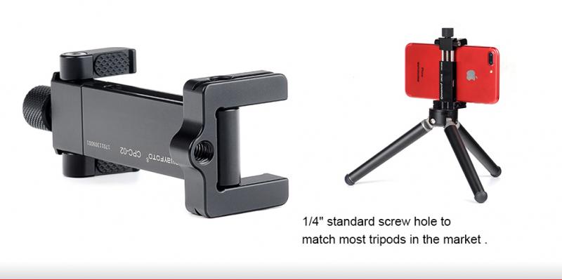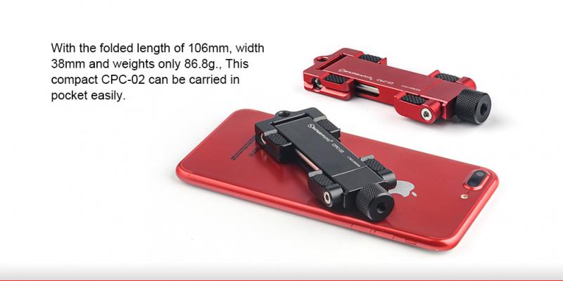 Sunwayfoto® CPC-02 är en Arca-swiss kompatibel universalhållare för smartphone, med ställbar gripvidd (63-105mm). T6061 Aluminium.