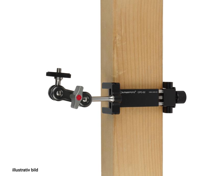 Sunwayfoto® CPC-02 kan också användas som en "tving". På bilden syns Sunwayfoto® CPC-02 och Sunwayfoto® GA-01Magic Arm (finns som tillbehör).