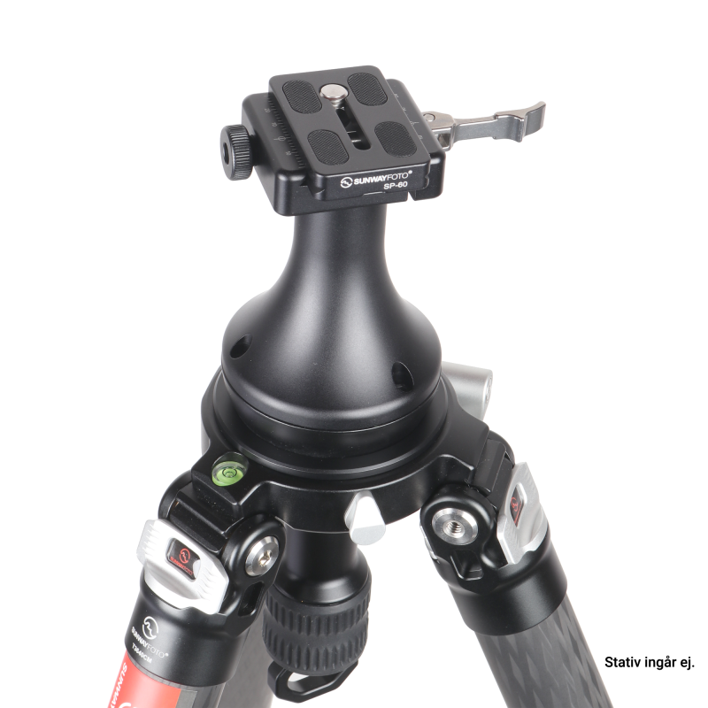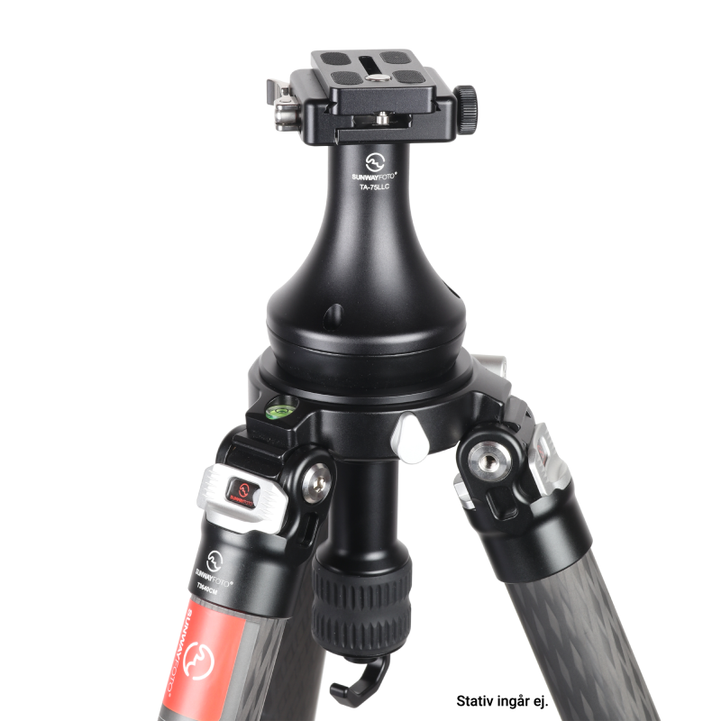 Sunwayfoto® TA-75LLC Bowl leveling base adapter är en nivelleringskula (för 75mm skål) med Arca-Swiss kompatibelt snabbfäste på ovansidan och ett gummerat handtag på undersidan. Nivelleringskulan gör det möjligt att filma mjukt och med hög precision. Nivelleringshuvudet är försedd med ett Arca-Swiss kompatibelt snabbfäste (Duo-Lever), med smidig låsspak. Låsspaken kan ställas i tre lägen från låst, halvlåst till öppet läge. I det halvlåsta läget så kan man t.ex skjuta kameraplattan framåt eller bakåt i snabbfästet . Snabbfästet är även försett med ett vred för fininställning av låsningen vid användning av kameraplattor av olika fabrikat. Snabbfästet levereras med kameraplatta SP-60 med standard 1/4" kameraskruv. Nivelleringskulan är tillverkad av T6061 aluminium. Sunwayfoto® TA-75LLC Bowl adapter kan användas till Sunwayfoto® T3640CM Master kolfiberstativ eller till andra kamerastativ med standard 75mm Bowl (Skål) för videofilmning.